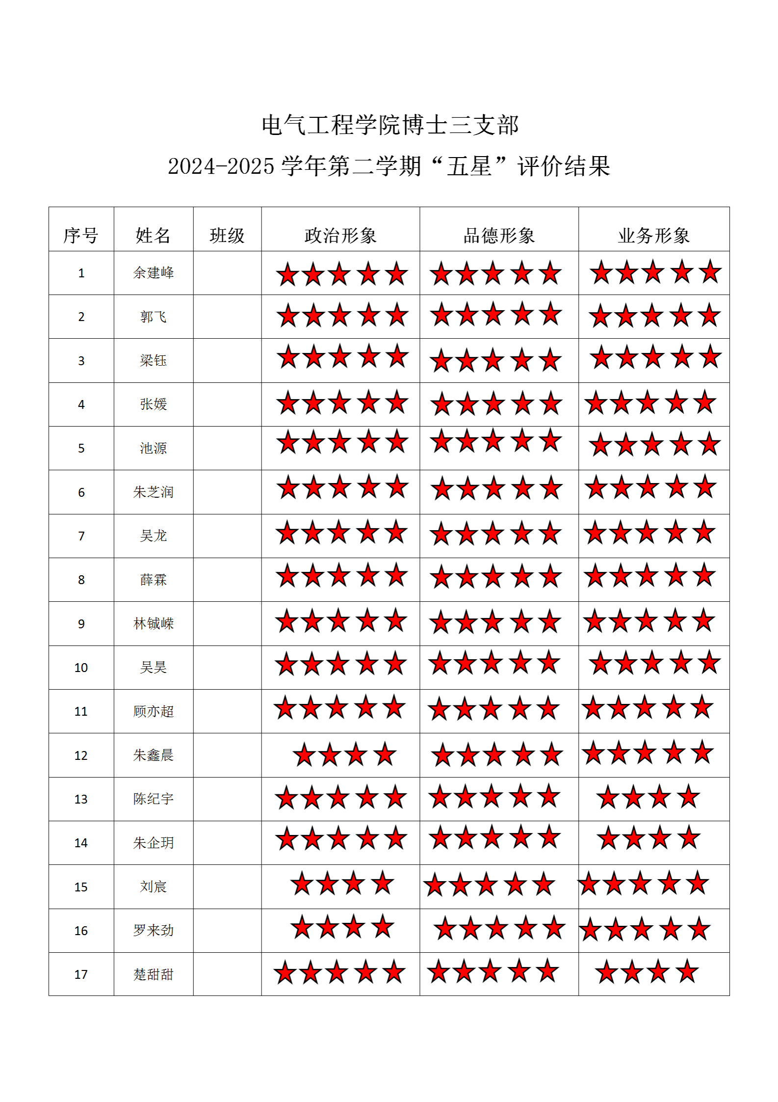 磁力猫 博士二支部 2024-2025学年第二学期“五星”评价结果