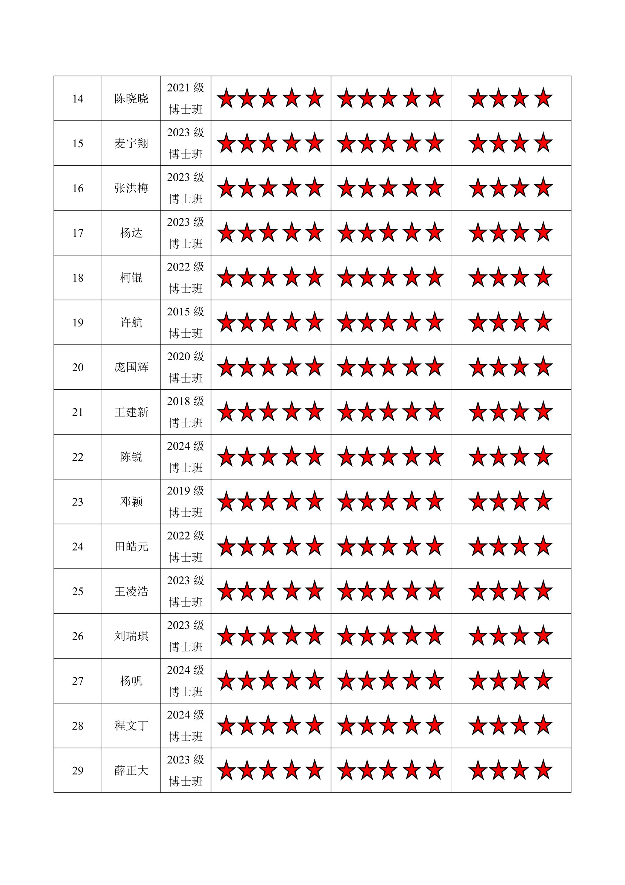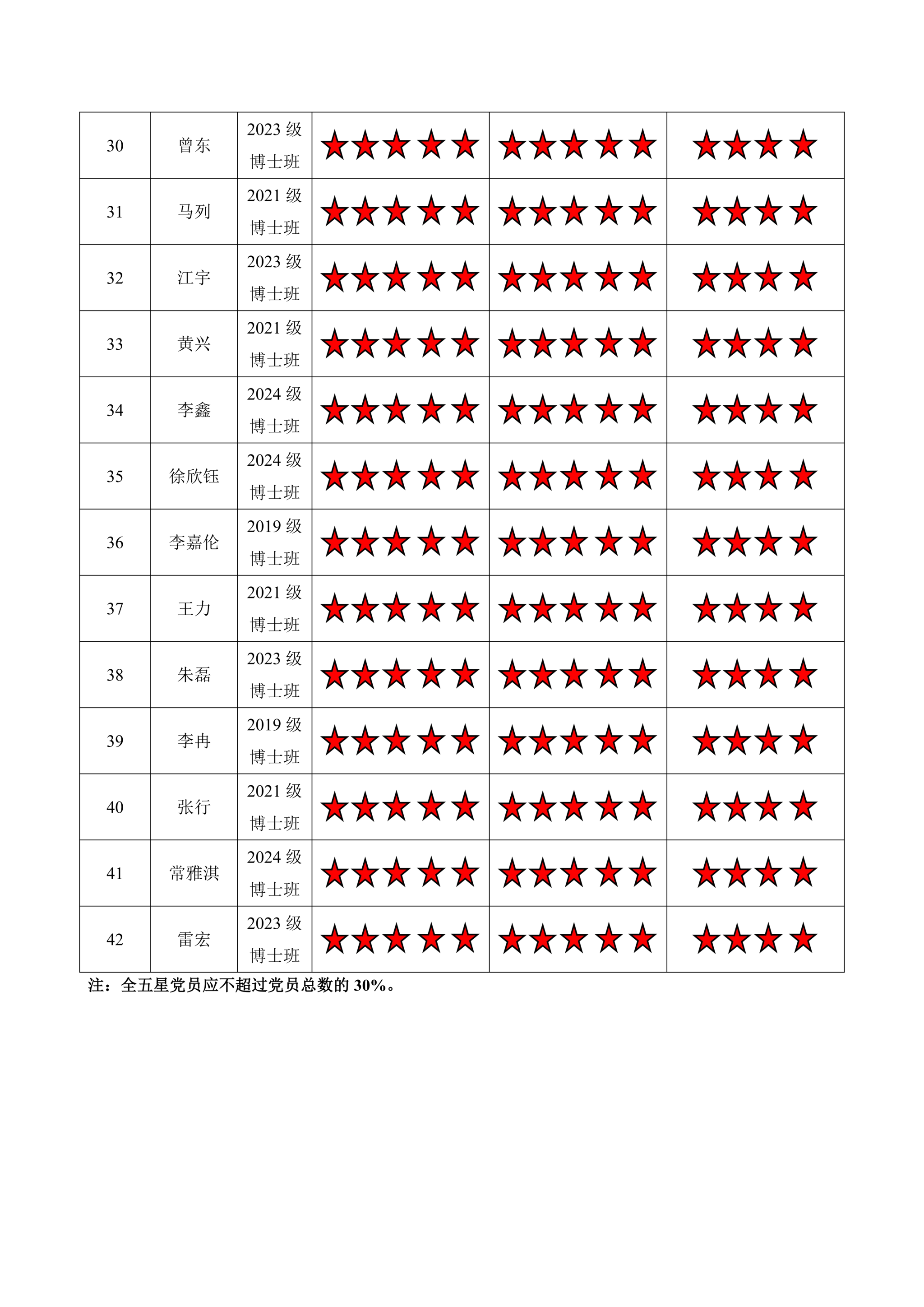 磁力猫 博士三支部 2024-2025学年第二学期“五星”评价结果