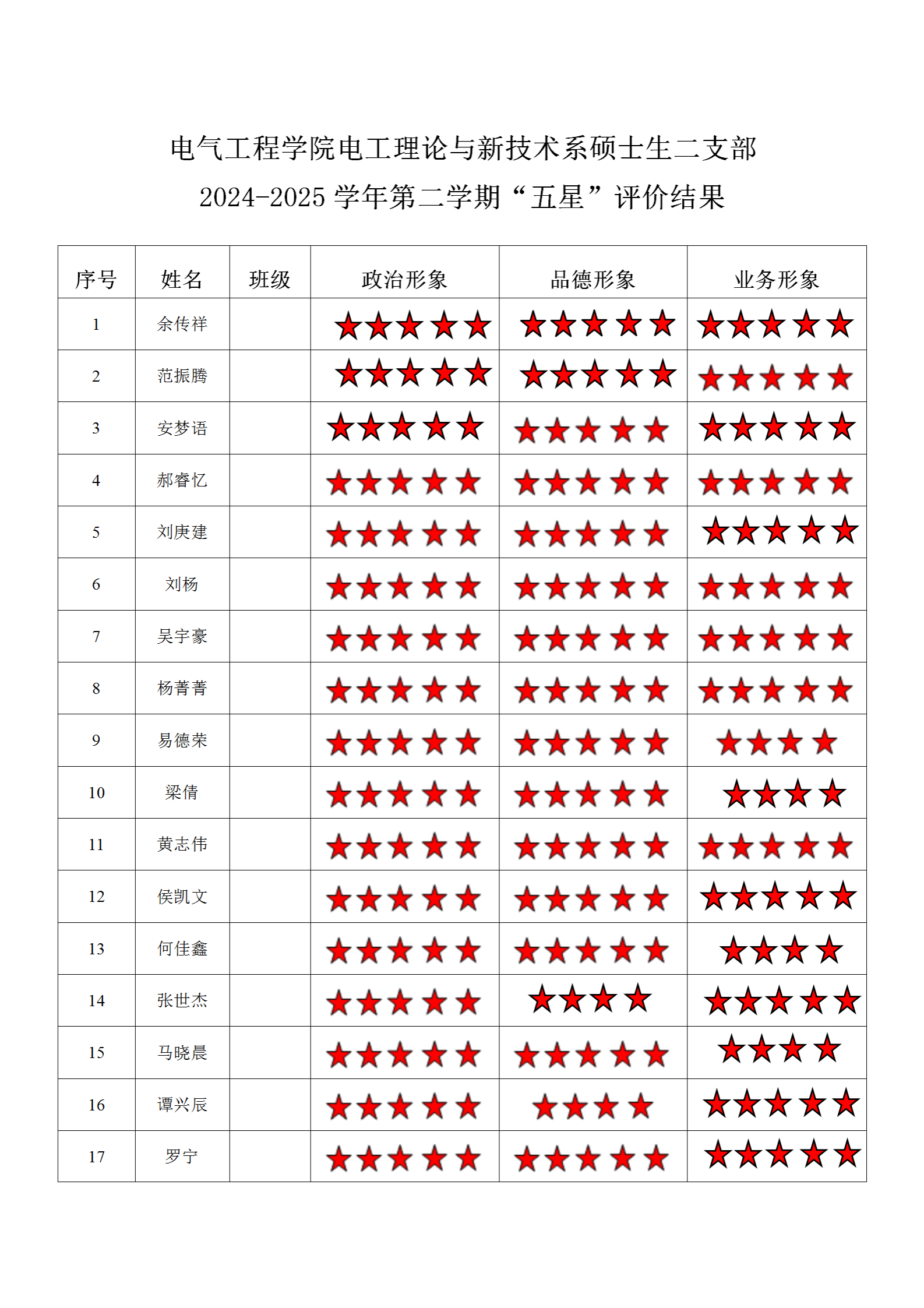 磁力猫 电工二支部 2024-2025学年第二学期“五星”评价结果