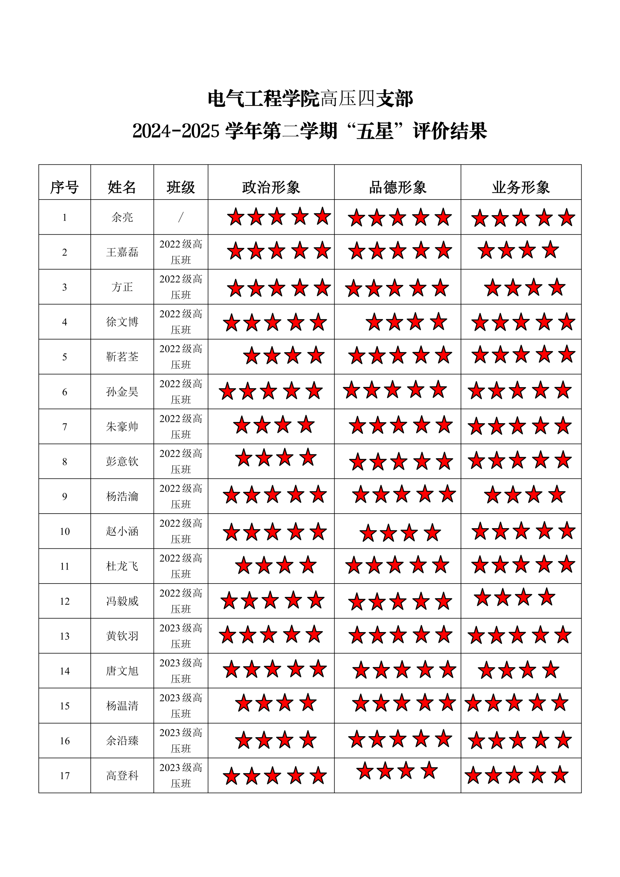 磁力猫 高压三支部 2024-2025学年第二学期“五星”评价结果