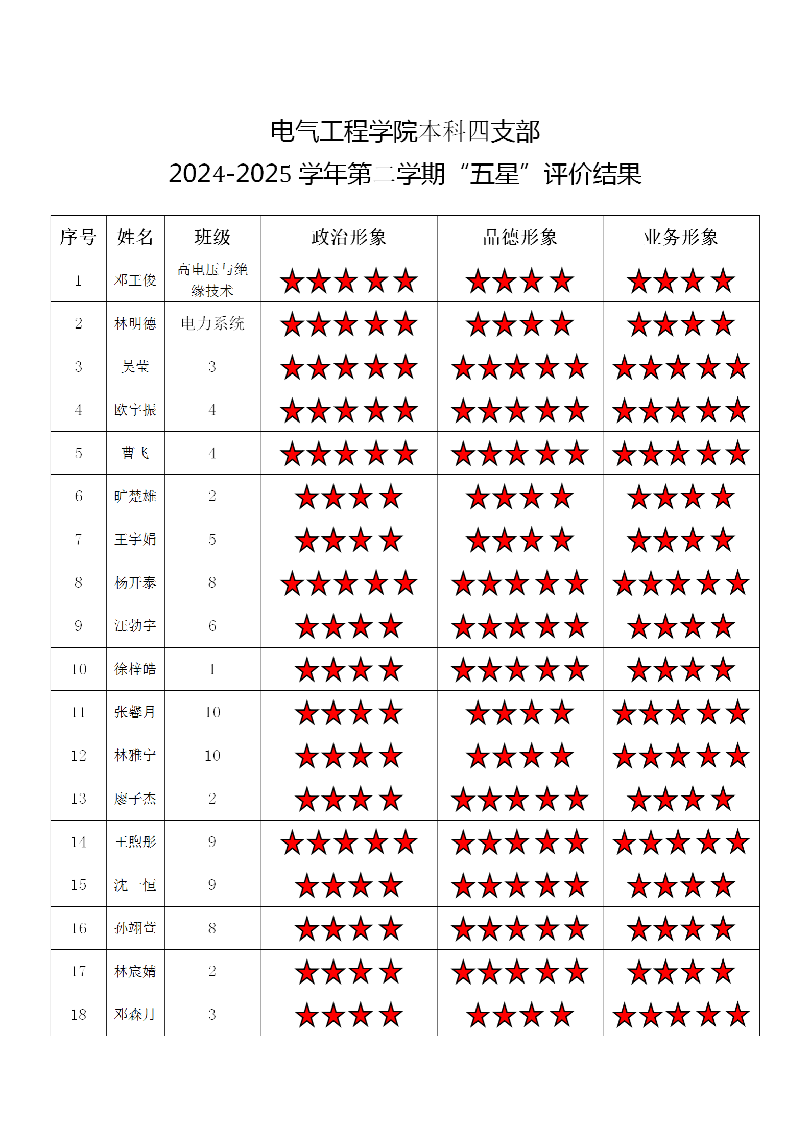 磁力猫 本科生二支部 2024-2025学年第二学期“五星”评价结果