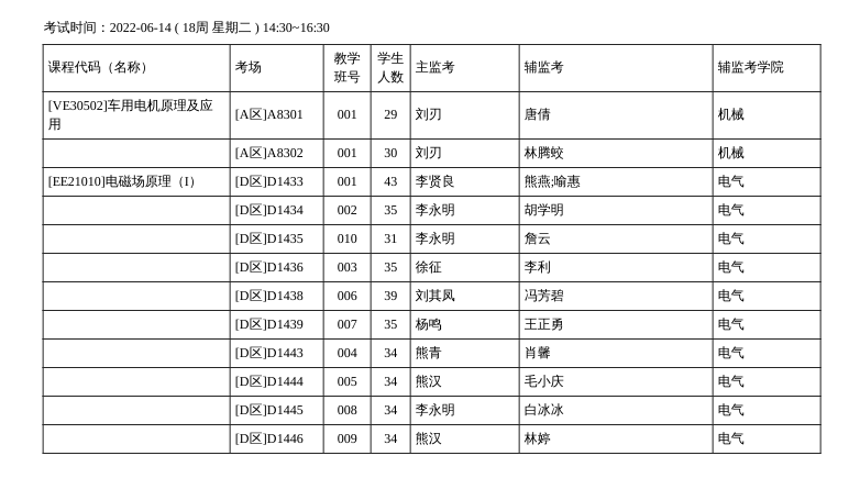 磁力猫 2021-2022第二学期期末集中考试周(18周)专业课考试安排