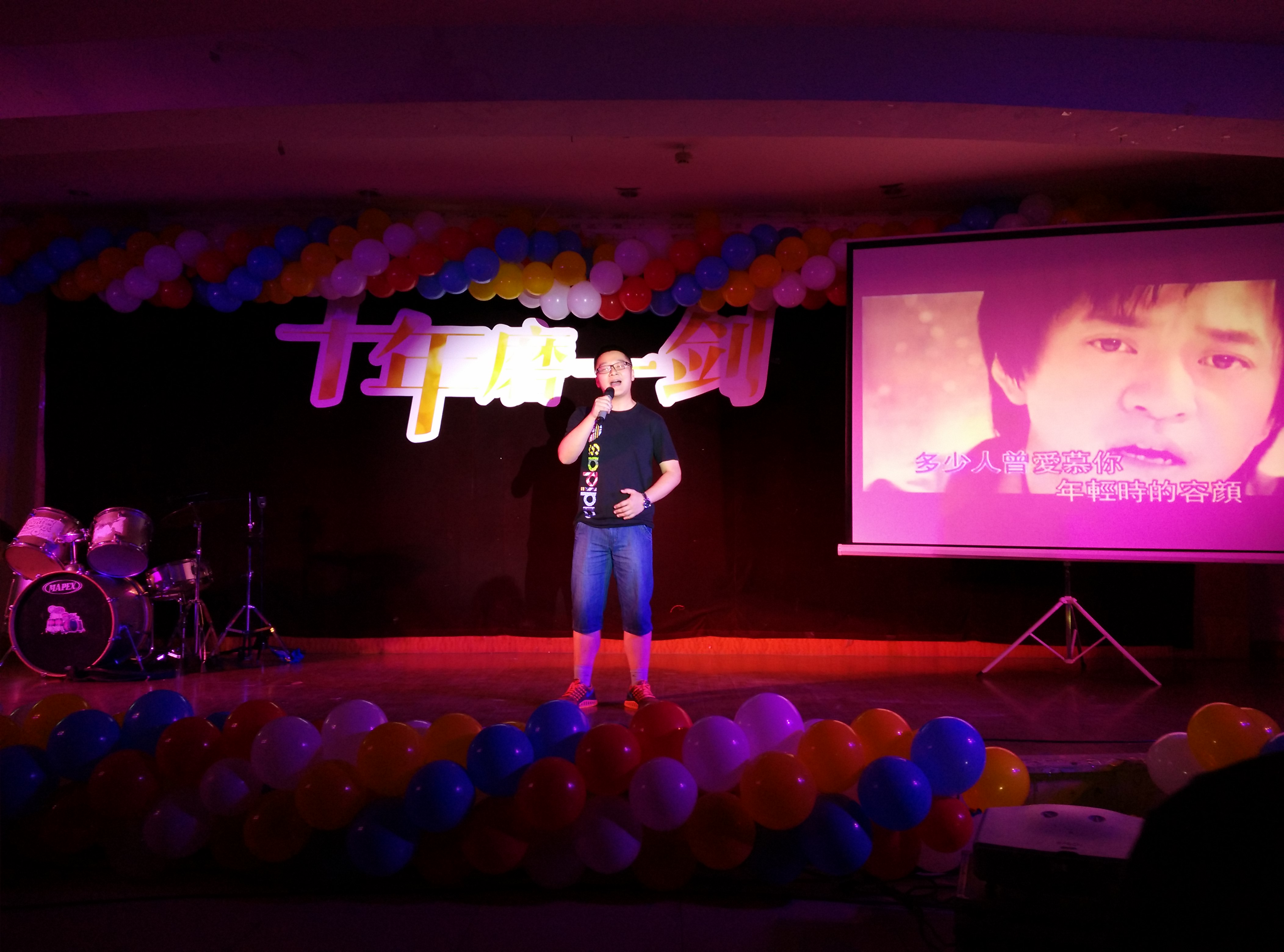 紧接着是校园歌手比赛环节。01级的两位校友分别深情演唱《怒放的生命》《听海》,还有12级的在校学生乔志伟带来的《一生有你》都赢得了满堂喝彩。最后“校园歌手”由观众的呐喊声评比,支持率最高的01级校友王楠赢得了这次比赛。