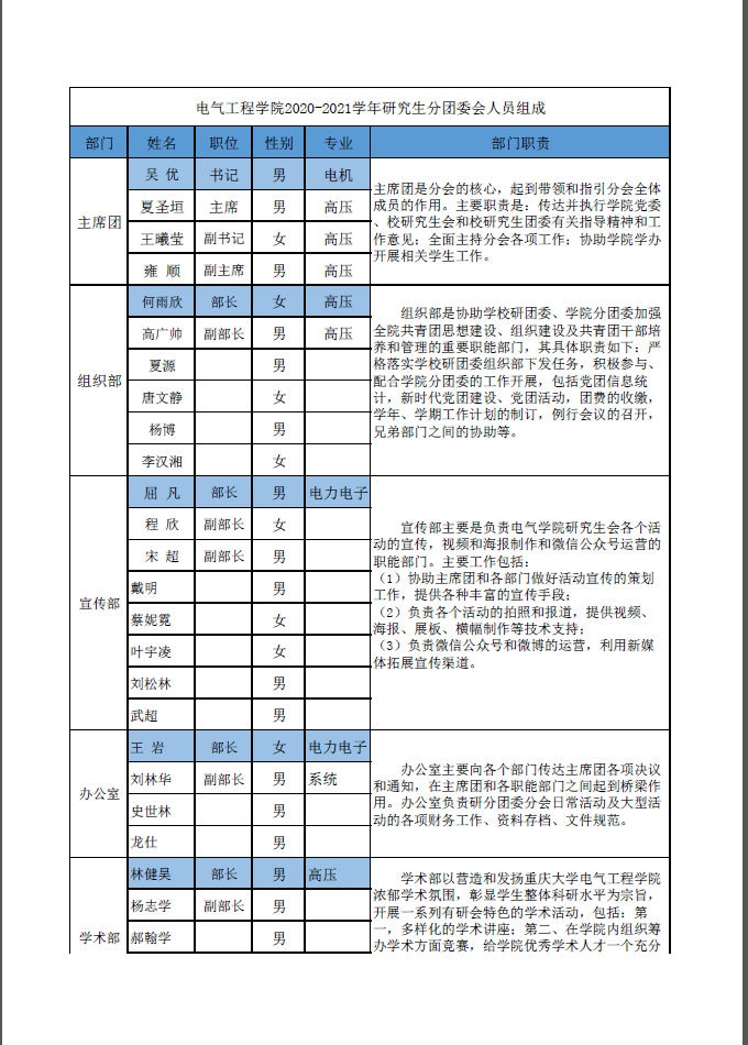 磁力猫 2020-2021学年研究生分团委会人员组成