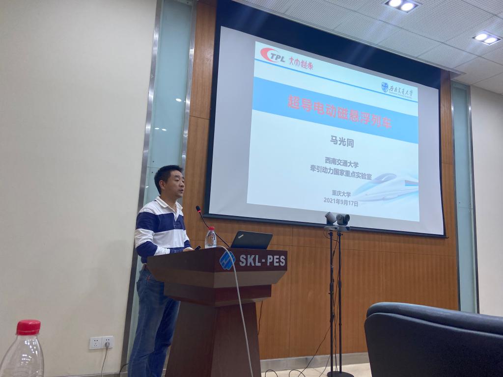 西南交通大学马光同研究员作了题为“超导电动磁悬浮列车”的报告,主要介绍关于超导磁悬浮技术。通过采用长定子直线电机牵引驱动和非接触式电磁耦合发电供能,能回避轮轨制式面临的粘着牵引极限和弓网受流制约问题。围绕超导电动磁悬浮的基本原理、系统建模、超导磁体技术、磁浮列车动力学特性等方面进行介绍,概述磁浮技术的发展历程,总结已取得的成果,展望磁浮列车的未来。