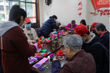 的志愿者们前往沙坪坝区天星桥干休所看望军休干部,为他们组织了一次制作纸花的手工活动。