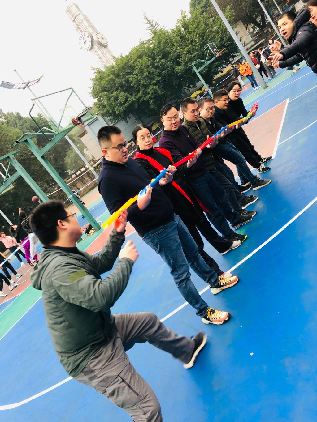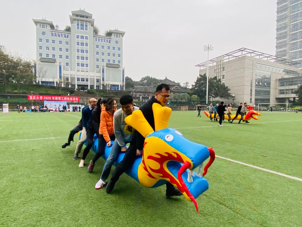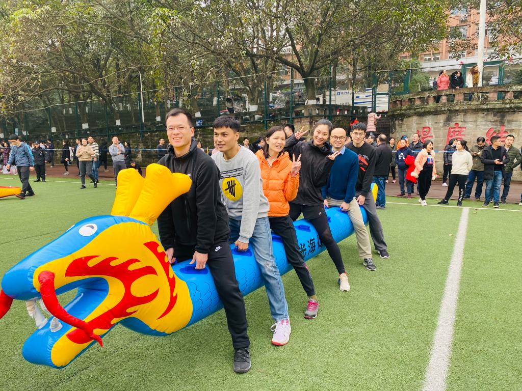 2020年教职工趣味运动在A区团结广场拉开序幕,本次全校共计41个单位参赛。本次趣味运动会共设置了“欢乐龙舟”、“螃蟹接力”、“跳长绳”、“智传呼啦圈”、“珠行万里”等5个比赛项目。