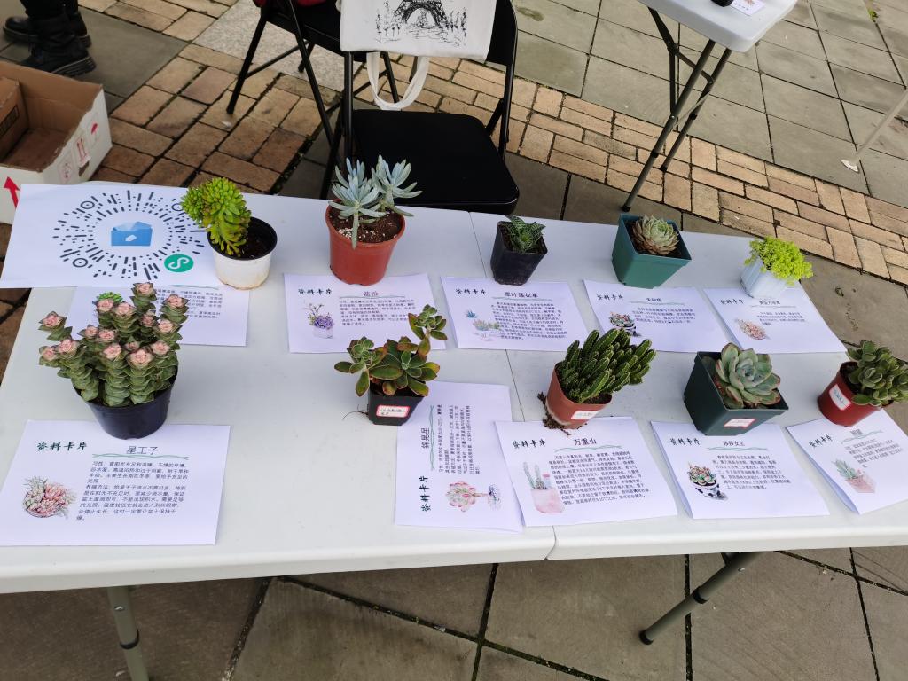 “多肉植物展览与分享”项目组在一食堂南广场举办了多肉植物展览与分享会,旨在通过多肉植物的展示、介绍,增加同学们对其了解,激发他们对于多肉乃至其他绿植的培养兴趣;同时搭建一个讨论交流的平台,使多肉爱好者聚集在一起,共同分享多肉养殖的方法、技巧,分享照顾多肉过程中的小确幸。