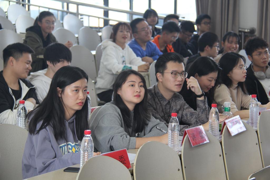 在自由辩论环节中,正方辩手首先就反方“娱乐化的知识不能作为真知”这一观点予以否定,并举例“在罗翔的普法视频中使用的张三这一娱乐化形象使得大众更易于接受法律知识”来支撑己方观点。而反方辩手亦有精彩的回击,以“大众因为缺少知识基础而更易于受到所崇拜的知识网红的误导”来扳回一局。双方八位辩手口若悬河,据理力争,战得热火朝天,展现出了电气学子才思兼备的独特风采。在评委商议比赛结果的过程中,有现场观众就自己的思考向辩手们提出了疑问。观众与辩手的交流使得现场的气氛十分活跃。