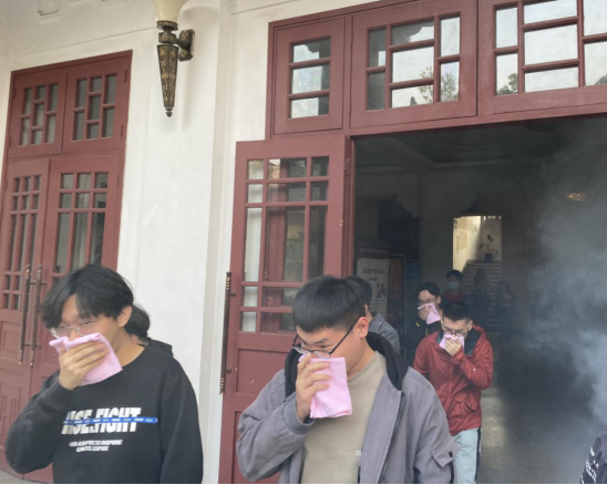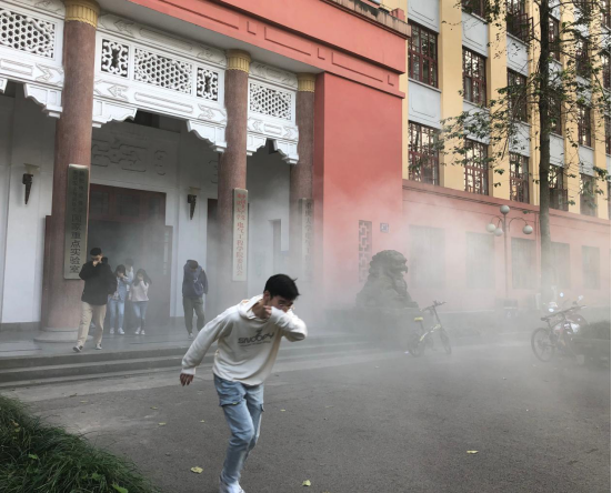 副院长胡建林下达演练指令。模拟火源点燃后,火情发现人员在第一时间按下手动报警器,各楼层引导员,各实验室负责人以最快的速度到达所在的岗位,组织学生快速、安全地疏散到安全地带。师生们沉着冷静、互相合作,行动有序,按照学院制定的紧急事件疏散方案,以最好的秩序、最快的速度,圆满地完成了此次疏散演练任务。