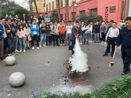 保卫处的老师向大家讲解了灭火器的使用方法,并进行了现场灭火体验,极大增强了师生们的消防安全意识,切实提高了大家的应急处置能力,对消防疏散要领和灭火技能等有了更加深刻的理解和体会。