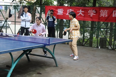 11月8日上午举行了八进四的淘汰赛以及半决赛。在八进四的淘汰赛中,我院对阵来自虎溪的数外艺联队。我院以精湛的扣球技能,先后在男单、女单和男双比赛中依次获胜,以3:0的成绩成功进入四强。在半决赛中,我院对阵材料学院,这是一场硬仗,不仅是实力的较量,也是智慧的比拼。经过队内谨慎的排兵布阵,在第一场男单的比赛中,队员尚虎军不敌材料学院,但在第二场女单的比赛中,激起了我院丘梓溦的战斗力,将比分扳为1:1。随后双方的比分处于你追我赶的状态,在第五场的对决中,我院因战术未及时调整,被材料学院打了个措手不及。