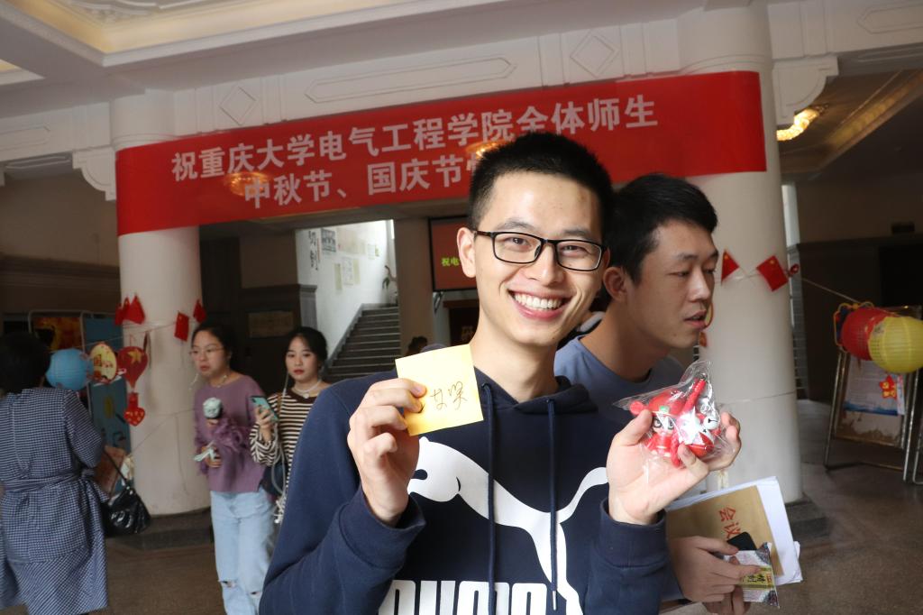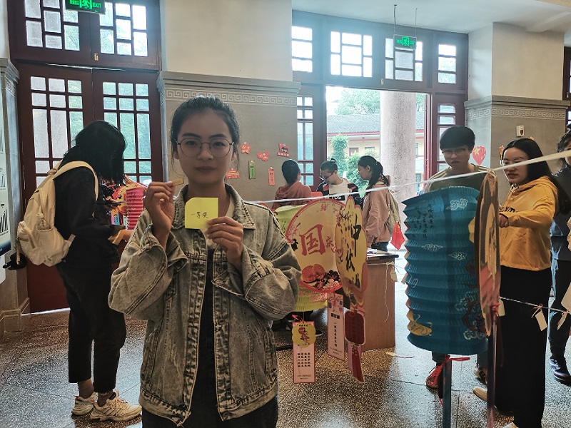 活动现场,为调动大家积极性,营造迎双节的欢乐氛围,我院研团分会在发放月饼的同时,开设了猜灯谜,抽大奖的活动。玲珑精致的灯笼上写着各种各样的灯谜,有脑筋急转弯,打字迷,歇后语,还有结合国庆节的一些小常识,凡是答中者,皆可进行抽奖,中奖率百分百。最后,为聊表心意,增设了相思寄语板块,参与者可以将自己的思念,烦恼,愿望写在卡片上并悬挂于灯谜中,以此寄托思念,憧憬未来。