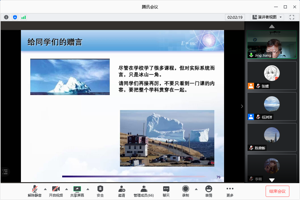 在姜院士两个半小时的精彩分享之后,同学们积极参与互动,踊跃和姜院士进行交流。讲座最后,任洲洋老师再次对姜晶院士的到来表示感谢,并邀请姜院士疫情过后莅临磁力猫