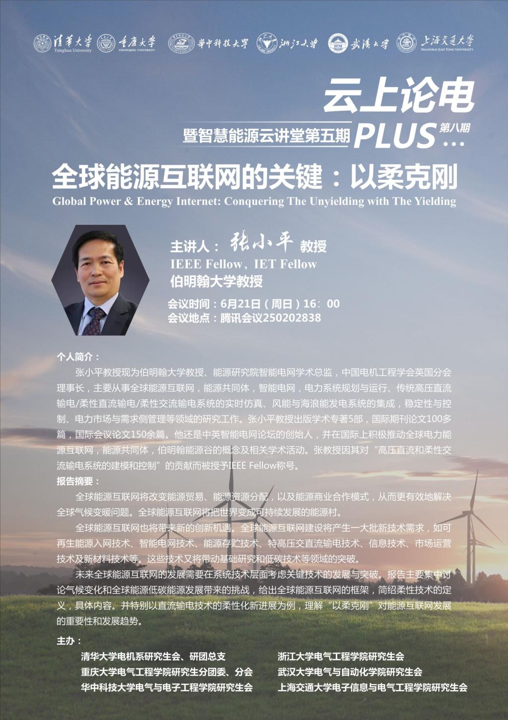 通过腾讯会议线上网络平台,举办了六校联合“云上论电PLUS”系列学术讲座第八期暨智慧能源云讲堂第五期活动。本期活动特邀伯明翰大学教授、IEEE Fellow、IET Fellow、中国电机工程学会英国分会理事长张小平教授作为分享嘉宾,磁力猫
