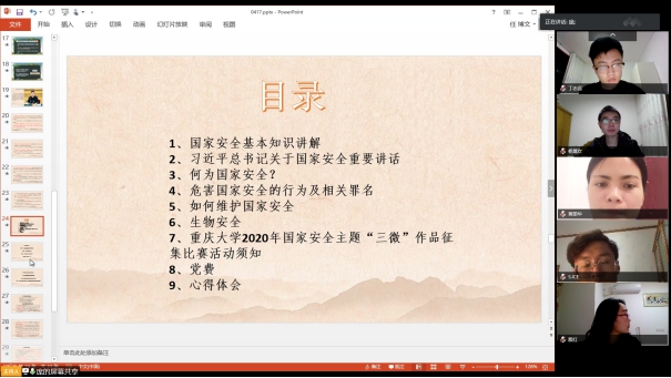 电工理论与新技术硕士生三支部与博士生二支部联合开展了“国家安全日”主题党日活动,集体在线学习了“总体国家安全观视角下的疫情防控”高校公开课。赵晖同志向大家介绍了习近平总书记在中央召开全面深化改革委员会第十二次会议上对生物安全相关内容的阐述,他认为,作为科研人员应该着力科技支撑,关注具有生命安全和生物安全防护的科技创新,为推动构建人类命运共同体贡献智慧和力量。