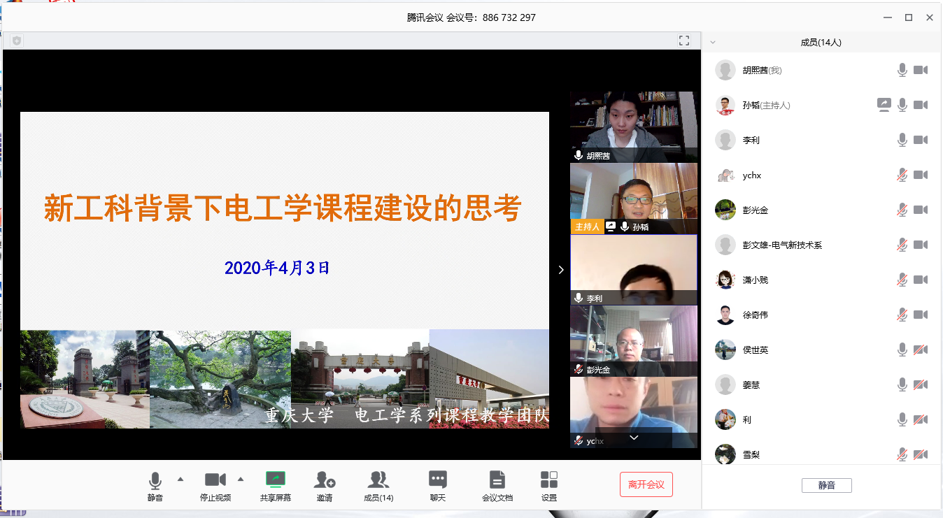 在新冠肺炎疫情依然严峻复杂的特殊时期,电工学系列课程教学团队综合开学以来的线上教学情况,于4月3日上午组织了网上教学活动:利用腾讯会议平台,通过视频交流、屏幕分享等方式,就开学以来大家各自为阵进行线上教学中出现的“新困难”、“新挑战”进行了交流沟通,分享了经验,为全面协同推进线上教学质量的提高提出多种解决的建议。