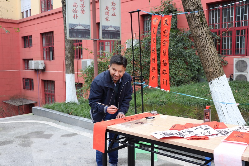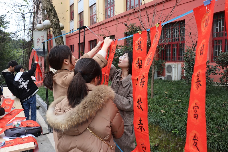 门口开展了主题为“笔墨凝香,子鼠送福”的送春联活动,以写春联、送祝福的形式与师生一起迎接新春佳节。