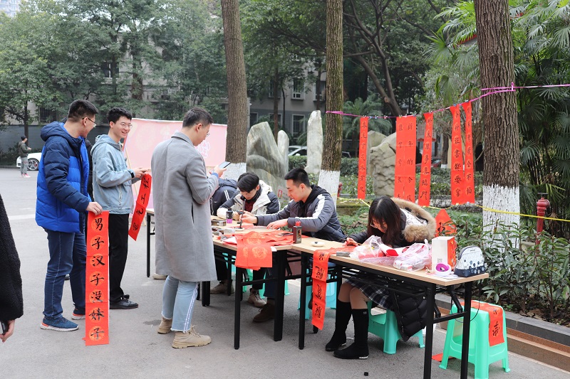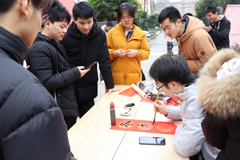 活动现场,学生志愿者们挥毫泼墨,创作出了一幅幅寓意喜庆吉祥的春联,前来领春联、拍照和观看的师生络绎不绝。大家聚精会神地欣赏着刚写好的对联,有的还跟着读了出来。一行行俊逸的书法,一句句祝福的话语,为磁力猫