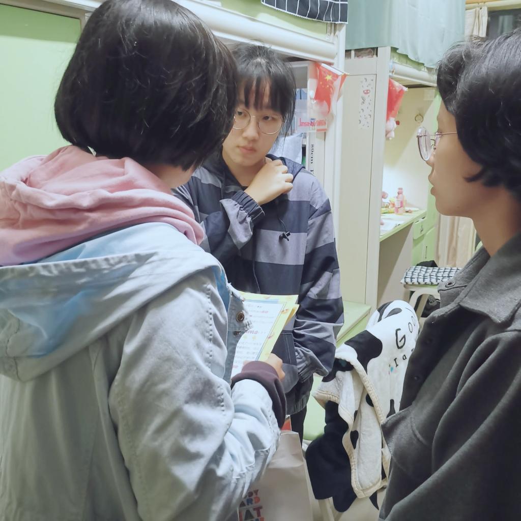 松二由男生成员负责,松四由女生成员负责。为了确保宣传到位,我们提前了解了电气专业大一大二所在的大致寝室。每一间寝室至少让一人了解我们的项目。宣传时,我们大致讲述了项目的初衷和目的,以及项目所使用的平台大致的用处和使用方法,并热情邀请同学们加入相关资讯群以便对该平台有更深刻的了解。宣传时,一人负责讲解,其他人负责拍照、处理入群申请、解疑答惑等,分工明确。