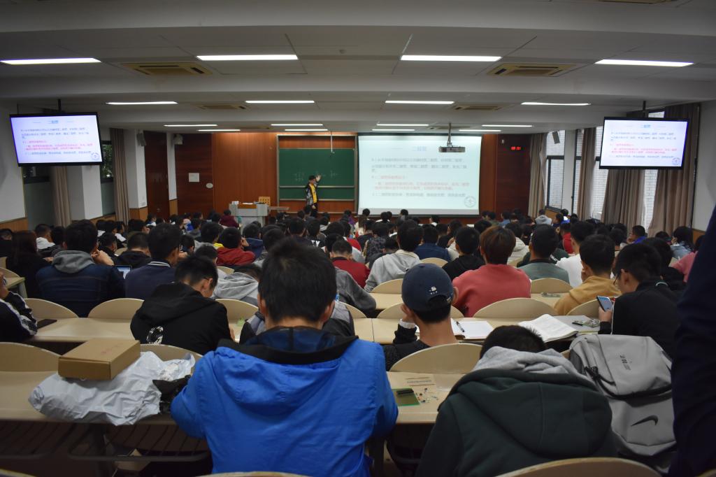 上午9时,参赛同学们在工作人员引导下依次排队进场、领取电子元器件。9时30分,培训正式开始。由主持人陈鼎新同学为大家简单介绍本届电赛流程。由嘉宾秦海鹏同学上台进行教学。秦海鹏同学先从电阻的分类、结构、参数、标注等方面向同学们详细地介绍了电阻这一基本元件。紧接着,他向同学们介绍了电容的分类,并比较了各种电容的优劣。