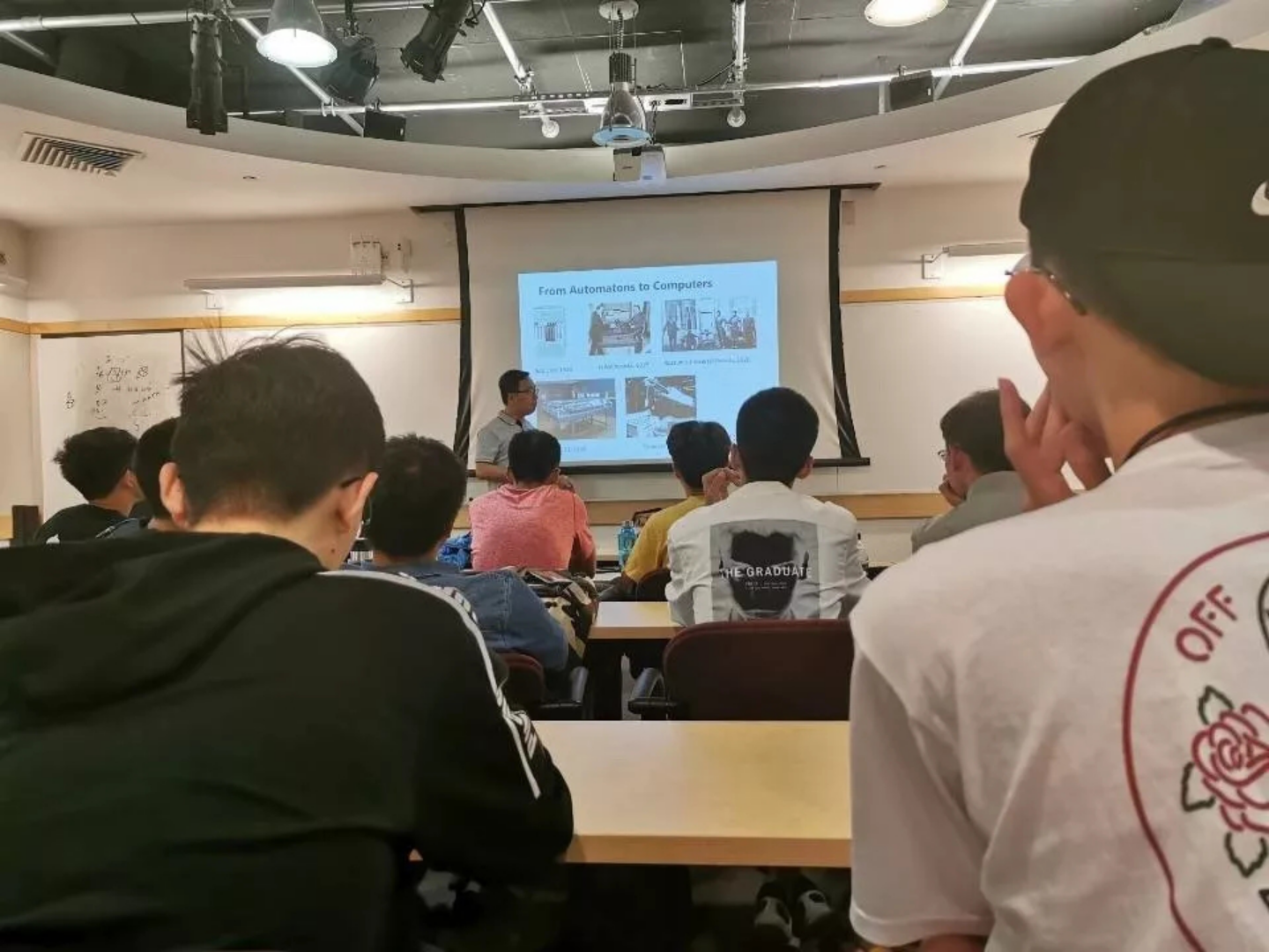 在伯克利分校,我们有幸聆听华人Allen教授为我们讲课,讲述内容主要是关于人工智能(AI)的一些知识,包括人工智能的定义,机械人三大准则。同时举了一些已经在生活中出现或者虚构出来的人工智能的例子,并耐心地为我们讲述了一些推理算法的知识,生动而形象,同学们收获颇多。Allen教授还亲手编写了代码,做成了可实现摄像功能的遥控小车,引得同学们一片赞叹。其间,恰逢学院老师陈民铀教授在这所大学进行项目合作,他来到教室,就着自己经历为我们讲述了中美电气工程专业的差异,同学们积极提问,气氛热烈。