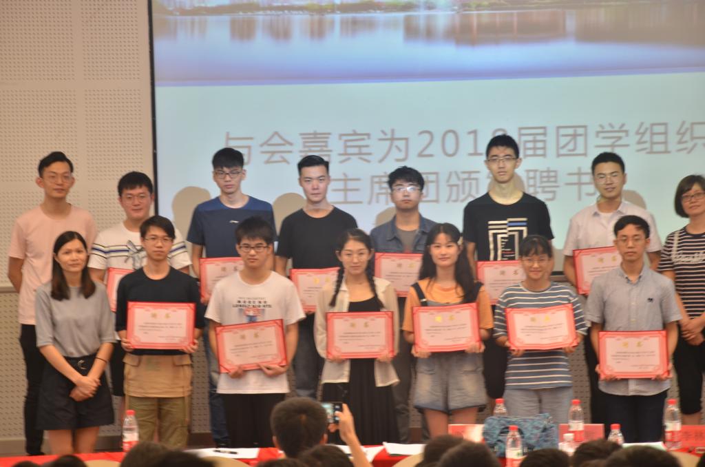 图三 与会嘉宾为2018届团学组织学生干部颁发聘书