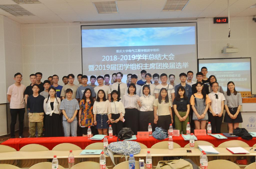 团学组织2018-2019学年总结大会暨2019届团学组织主席团换届竞选活动在D1137顺利举行。电气学院学办主任罗敏老师、电气学院团委书记喻惠老师、电气学院本科兼职辅导员 李林威以及各2018届主席团成员作为嘉宾出席本次会议。