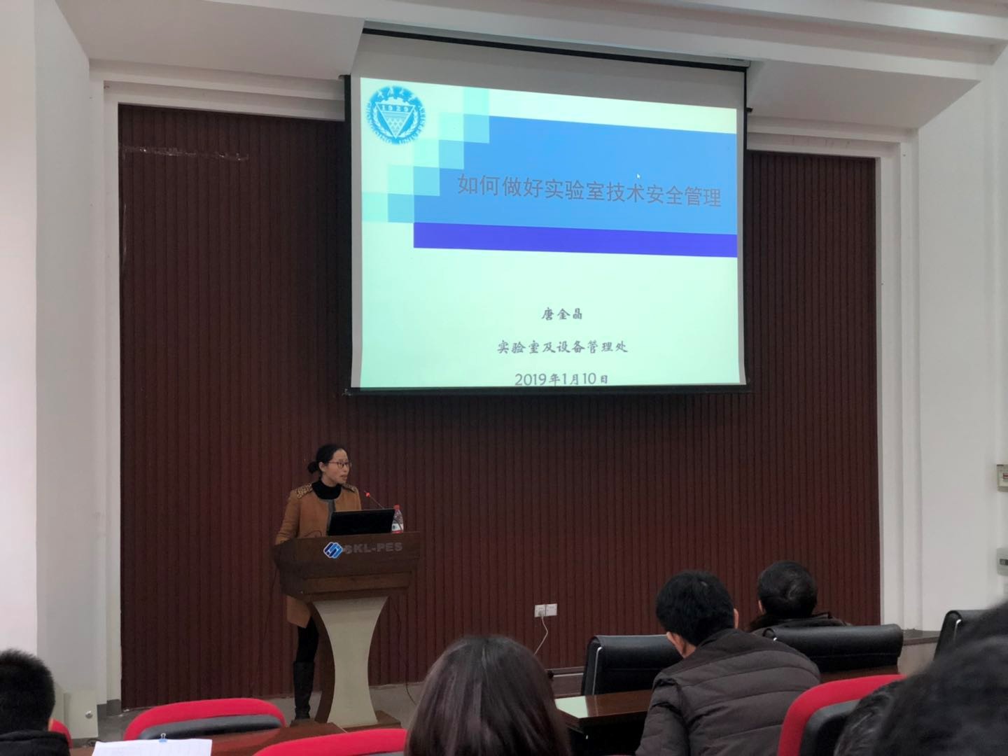 为了进一步加强我院师生的实验室安全教育,会上特邀请学校实验室及设备管理处实验室技术安全科唐金晶科长为我院全体教职工进行了安全教育,唐老师围绕教育部实验室技术安全检查项目、学校的安全组织体系及制度并结合我院的学科特点,做了题为“如何做好实验室技术安全管理”的报告,详细介绍了教育部和学校关于实验室技术安全的相关制度,以及实验室化学品、气瓶、辐射、特种设备、用电安全等相关管理规定,为使老师们提高安全意识、掌握相关安全知识、明确安全责任做了一场生动的报告。
