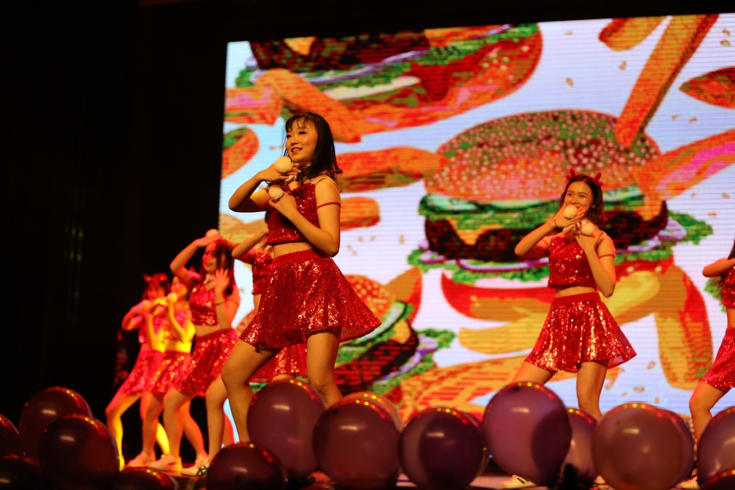 在四位主持人致开场词,介绍完来宾、领导、抽奖规则后,各位师生的文艺演出一一呈现,可谓精彩纷呈,首先是街舞《I like it》,酷炫的舞姿点燃了全场的激情。