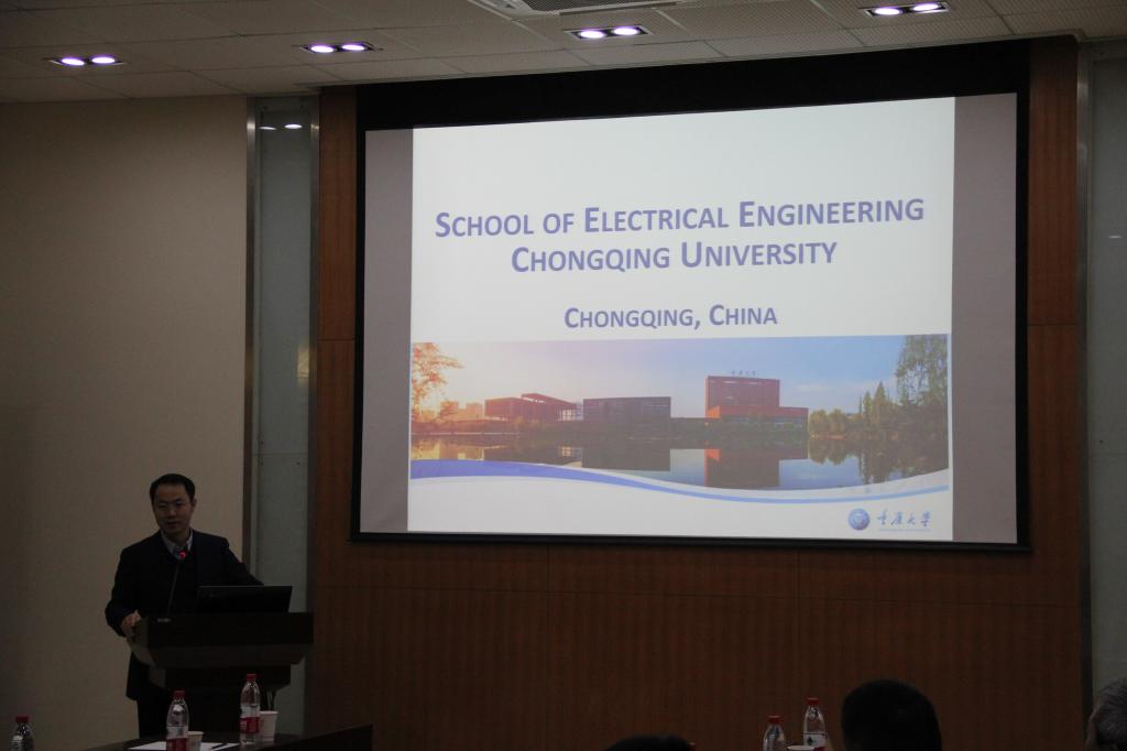 接着,前英国丹尼克斯半导体有限公司研发工程师蒋华平博士、重庆大学“百人计划”杨知方博士受邀做大会主题报告。蒋华平就碳化硅功率半导体发展现状与趋势向大家做了汇报,他介绍了碳化硅材料的发展历程和基本现状,分析了碳化硅的性能及其应用以及未来的研究与应用方向;杨知方针对电力系统的非线性和非凸优化的效率问题,介绍了通用的潮流方程线性化方法及其在优化领域中的应用。