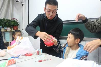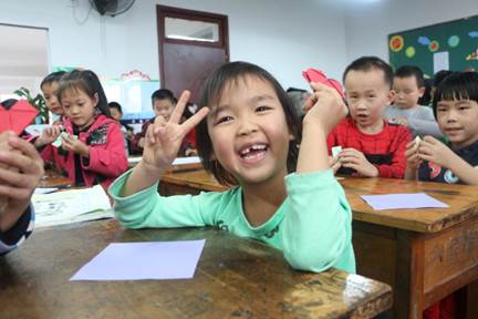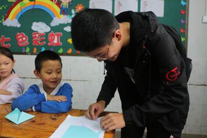 接下来就是考虑到一年级的同学第一次科技课堂,如果全是听科技知识的讲解,可能会有些吃力,志愿者们便提前准备了趣味折纸教学,再次激起了孩子们的热情。在志愿者的帮助下,同学们都学会了折爱心,兴奋得不得了,都要把爱心带回去给爸爸妈妈看。快乐的时间总是不经意间就溜走,这一次的支教课堂就在孩子们不舍的眼神中结束了,志愿者们与孩子们相约下一周四的课堂再见。
