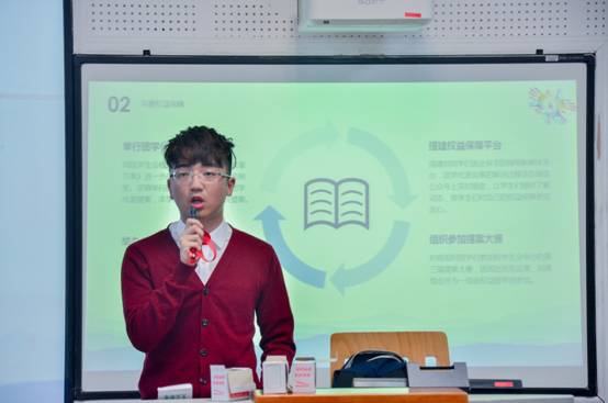 团委副书记助理邓博文、学生会副主席黄方也、媒体中心主任宋一嘉、青年志愿者协会副主席宋雨轩、学生科学技术协会副主席张奔、社团联合会执行理事冉梦源分别就半学期以来各团学组织的工作开展情况,以及下半学期中各团学组织的工作计划进行汇报。