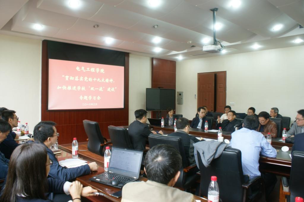 院党委书记周林介绍了本次(扩大)专题学习会的目的,要求大家贯彻落实党的十九大精神,围绕“双一流”建设主题就学校和学院的发展进行深入研讨。院长李剑结合学校新学期干部大会精神和学院的实际情况,在会上作了“双一流”建设工作汇报,重点介绍了我院四轮电气工程学科评估排名情况、本科生研究生培养、学科方向、研究平台、国际交流合作和人才引进培养工作等方面,对现状进行了分析,剖析了主要问题和不足,对推进“双一流”建设提出了发展思路、目标和策略。中国工程院外籍院士、加拿大工程院院士李文沅对学校推进“双一流”建设的国际化人才引进、培养以及学科发展方向等方面提出了宝贵的建议,其他与会人员围绕会议主题也逐一进行了发言并认真展开了讨论,对学校和学院下一步工作提出了建议和对策。