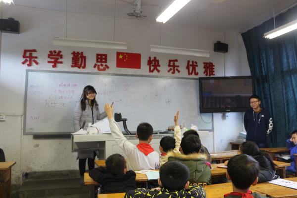 的四名志愿者和一名电气青协干事一起前往保家小学开展支教活动,为同学们带去了充满趣味与知识的一课,让同学们惊叹于科学的神奇。