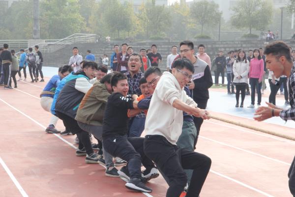 首先开展的是拔河比赛的小组赛。在小组赛中,十个班分成五组,两两对决,决出五组胜利组。随着各组的裁判一声令下,本就热闹的操场沸腾了起来,激昂的音乐、选手奋力的吼声和观众的加油助威声交互在一起,为操场带来了属于青春的呐喊声。