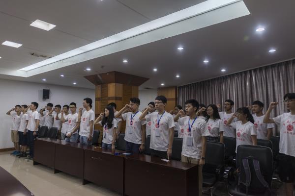 在开幕式上夏鸣风老师指出要保证自身安全,深入体验当地改革,把目光放在当地弱势群体上,以一名大学生的身份为当地社会发展做出力所能及的事情。常年跟进“三下乡”工作的夏老师的建议引发了王晓静副院长的回忆。她忆及去年三下乡活动中为社区居民修理小家电的场景,“对于同学们,除了敬佩还是敬佩”,称赞了志愿者们不畏辛苦、不怕麻烦的志愿精神,希望同学们继续传承发扬,并着重强调了安全问题,交代大家在陌生环境中要保护好自己。谈及过去的活动经验,李成祥书记带领志愿者们回忆了以往涌现出来的优秀学生代表和老师代表,向志愿者们表达了学校对此次三下乡活动的高度重视以及对志愿者们的殷切期望。“三下乡,科技、文化、卫生下乡,我们要用微薄的力量做实事、做好事”。李书记最后还提出三项要求,希望志愿者们在活动中“勤于学习,乐于奉献,严守纪律”,他亲切地鼓励志愿者们在本次活动中攀登新的高峰。 随后,由本次三下乡志愿E团团长15级研究生李非凡同学带领志愿者们进行了志愿宣誓,志愿者们举起右拳庄严宣誓:“我志愿成为一名光荣的社会实践志愿者,秉承重大电气优良传统,发扬志愿服务精神,在实践中运用专业知识、传播先进文化,向实践学习,向人民群众学习,奋发进取,开拓创新,为建设和谐社会贡献智慧和力量!”将现场气氛推向高潮。