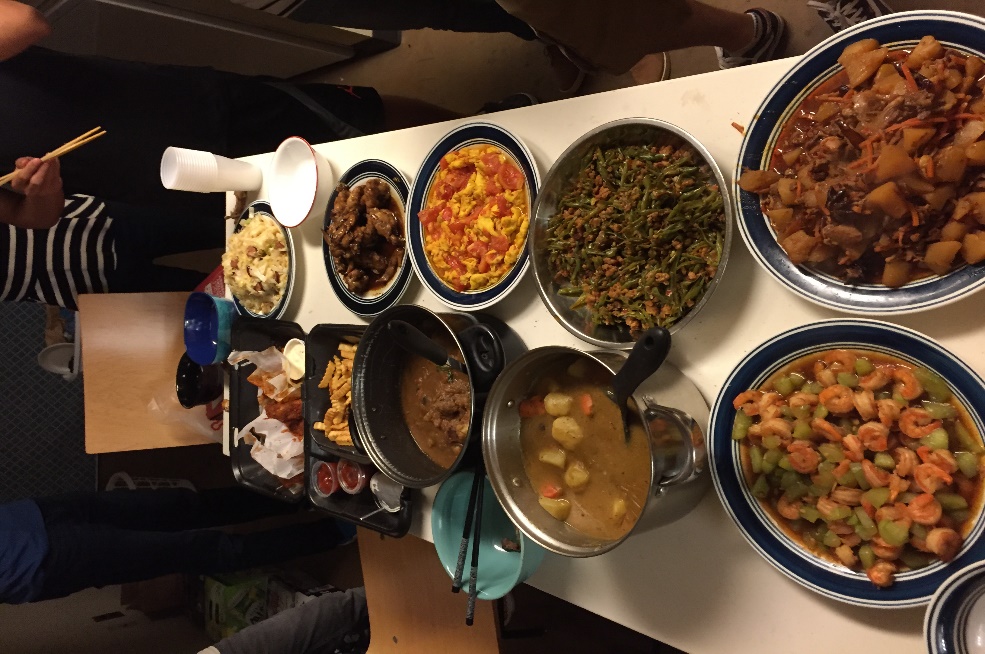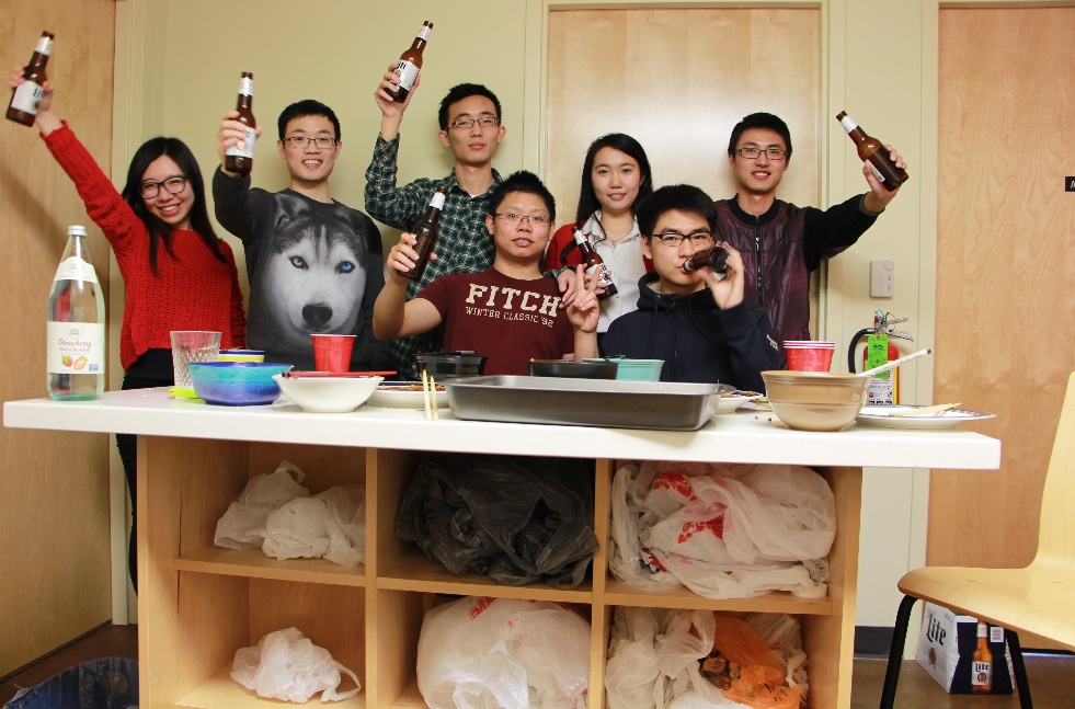 美国不同于中国,餐馆其实分布没有那么均匀,并且营业时间也一般不长,只有PIZZA店或者McDonald这种会营运到深夜。同时吃惯了中国菜的我们一开始并不习惯美式的“暴力”饮食,一般外出饮食价格也不便宜,还要考虑小费和看懂各种奇葩菜单,坚持了一两周后我们基本都开始了自己学做饭的艰苦历程(我们在也美国度过了一个特别的春节,每人都分享了各自的拿手好菜)。但这里也要提一下美国的原始食材价格确实是不贵,并且质量相当的好。中国超市也能买到大部分所需的调料,所以到了最后大家也都变成了大厨。