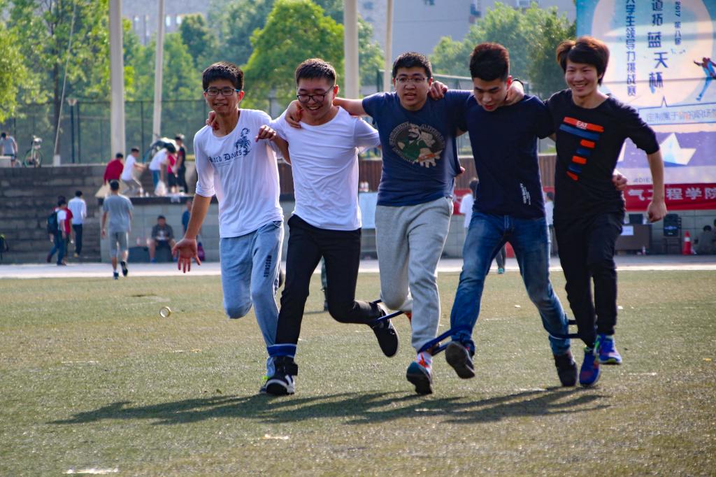 最后一个项目是跳马绑腿跑。合理的人选和运动员们的协调合作是该项目致胜的关键。该项目充分的培养了同学运动员们团结协作的精神。