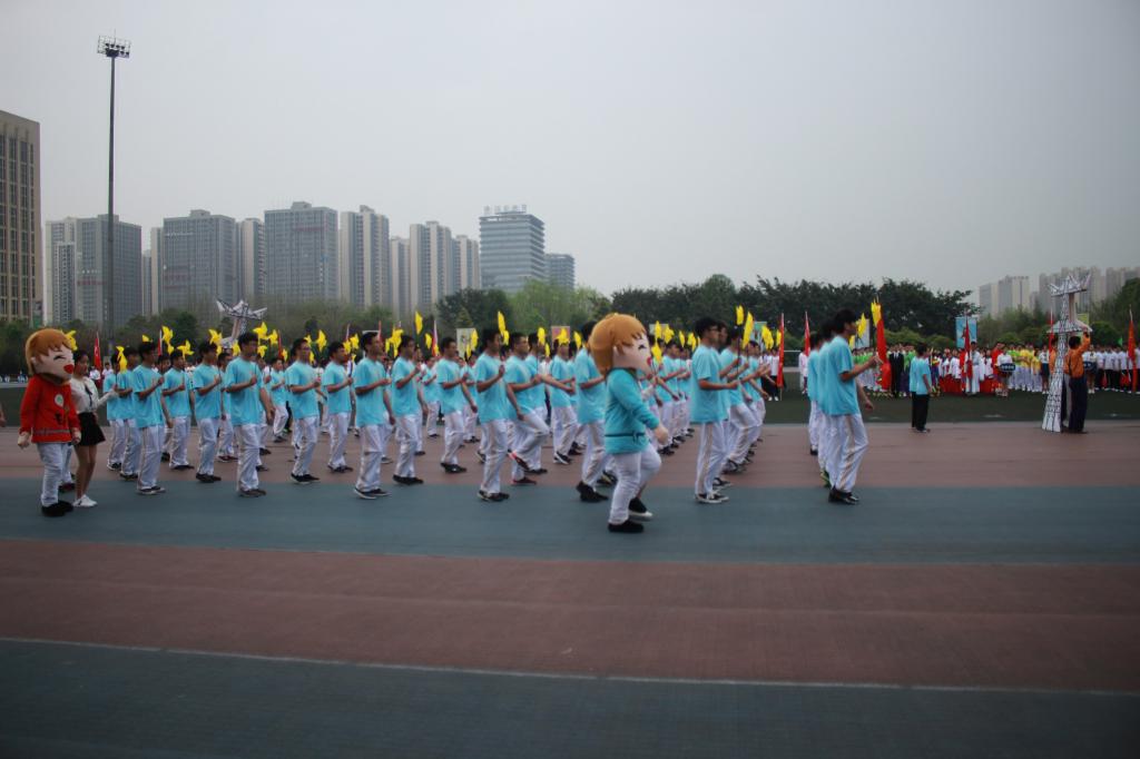 副校长杨丹对运动会以及开幕式进行致辞,杨丹副校长出了大学生的身体健康和素质对于我国未来发展的重要性,并呼吁全校师生走出宿舍,到户外强身健体。接下来运动员代表和裁判员分别进行了庄严的宣誓,保证本届运动会的公平与公正。在运动员退场后,一群身着红衣富有活力的同学井然有序的跑入了操场中间,开始了精彩的中国第一套戏曲广播体操的表演。广播体操表演结束后,各学院的健身操方阵入场开始了磁力猫