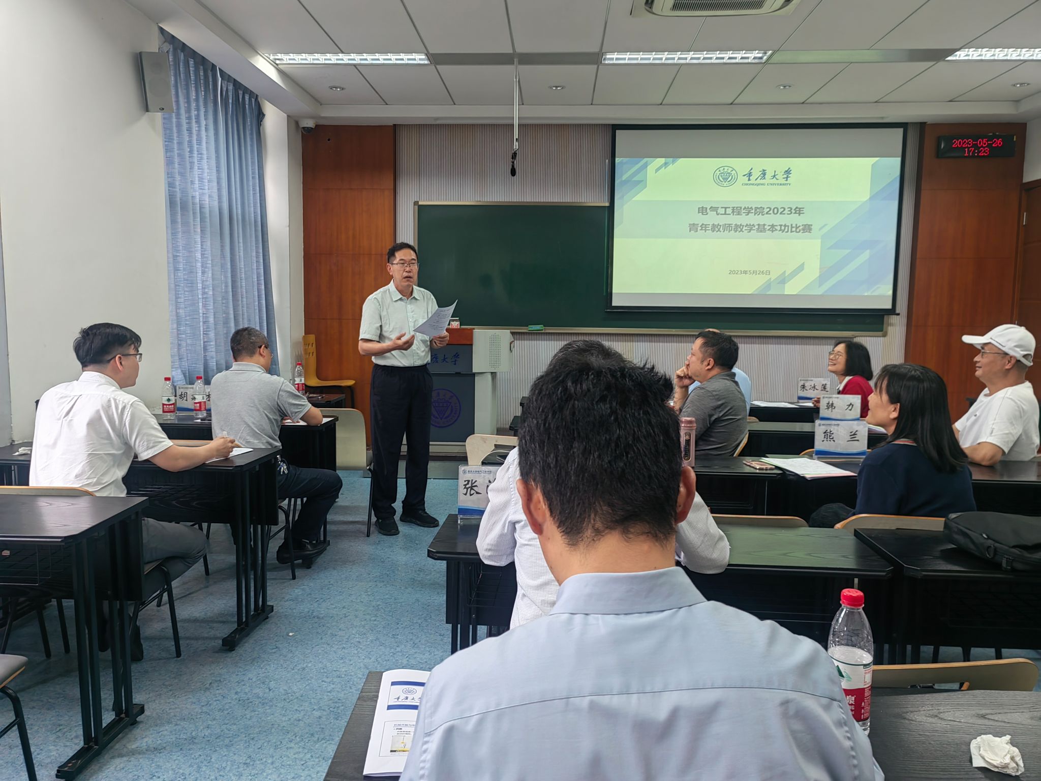 最后,评审老师对此次比赛进行了点评,对电气学院的青年教师们在本次比赛中的精彩表现予以肯定,同时在教学内容的选择、教学导入的注意事项、如何做好PPT、如何设计板书等方面进行了具体的指导。