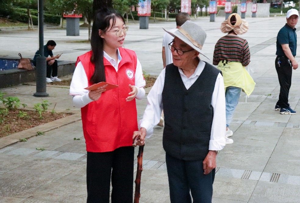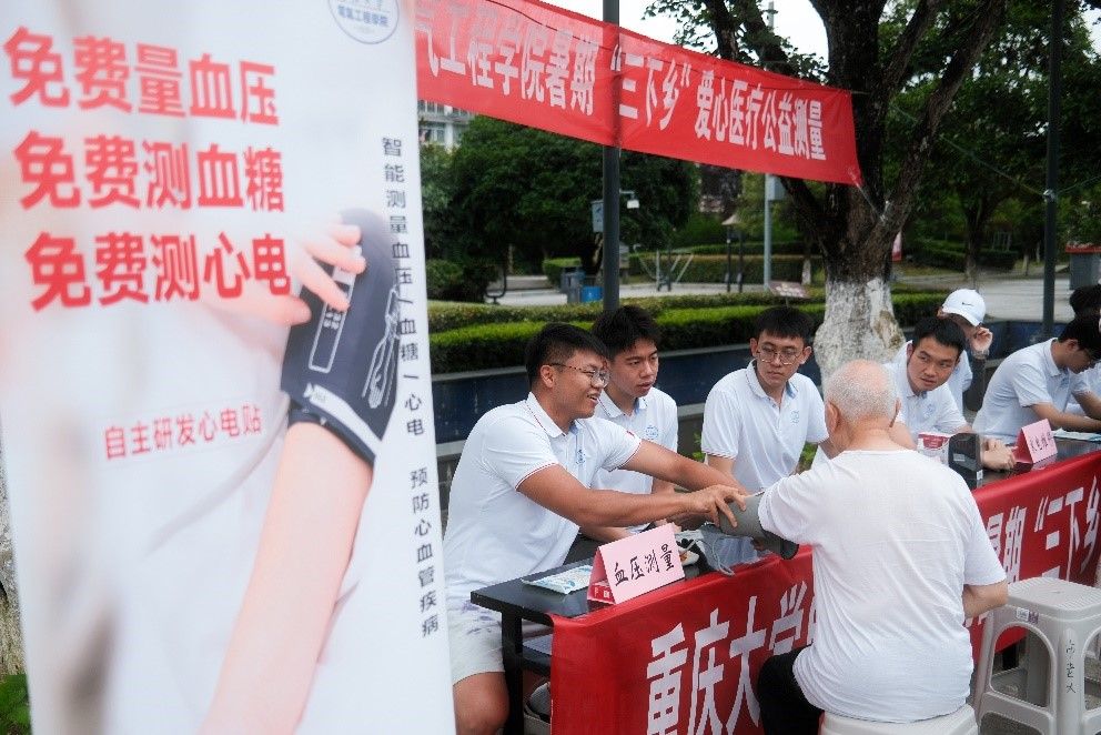 “振兴美丽乡村,‘电’亮科创武隆”实践队来到重庆市武隆区仙女广场,以“科技赋能助力公益”为主题,面向当地社区居民开展了爱心公益测量服务,助力基层医疗体系建设。