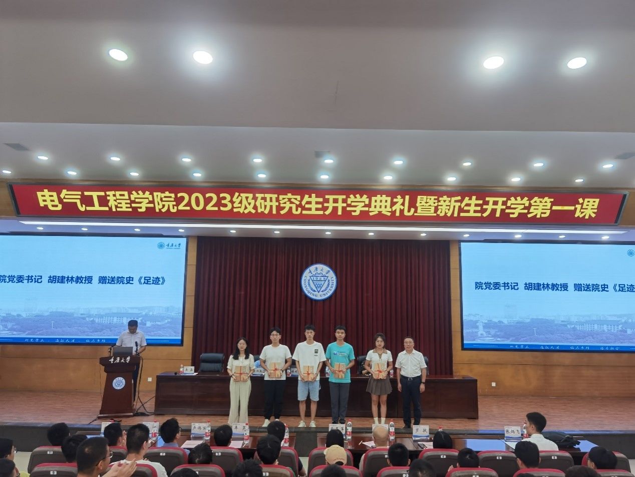 胡建林为新生代表赠送院史《足迹》,希望大家继续传承重大电气精神,肩负历史使命,立大志、明大德、成大才、担大任,努力成为堪当民族复兴重任的时代新人,把学院延伸到更加广阔的社会空间和时代前沿。