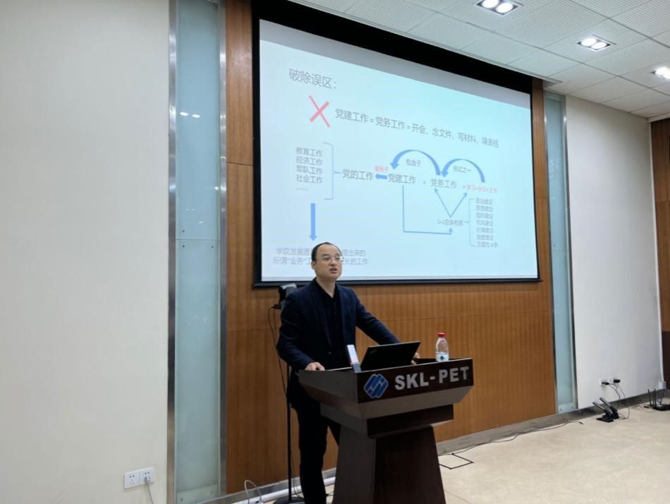 孙江林以《支部建设的若干思考》为题面向学院全体支部书记做专题讲座,通过生动形象的案例解读了党建工作与党务工作的区别,阐述了党建工作重要性,从“党建+业务”一融双高的角度重点介绍了如何强化基层支部政治功能建设、党支部书记如何扎实开展基层党建工作。