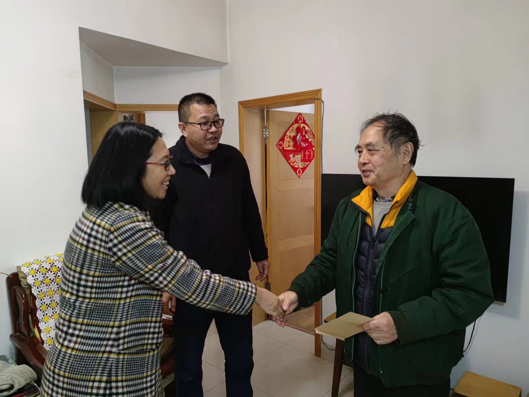 党委书记胡建林、院长谢开贵带领学院领导班子、各系主任和支部书记联合学院工会组织开展了元旦春节走访慰问工作,陆续看望了36位老党员、离退休教师、生活困难教职工并提前送上了新春祝福。