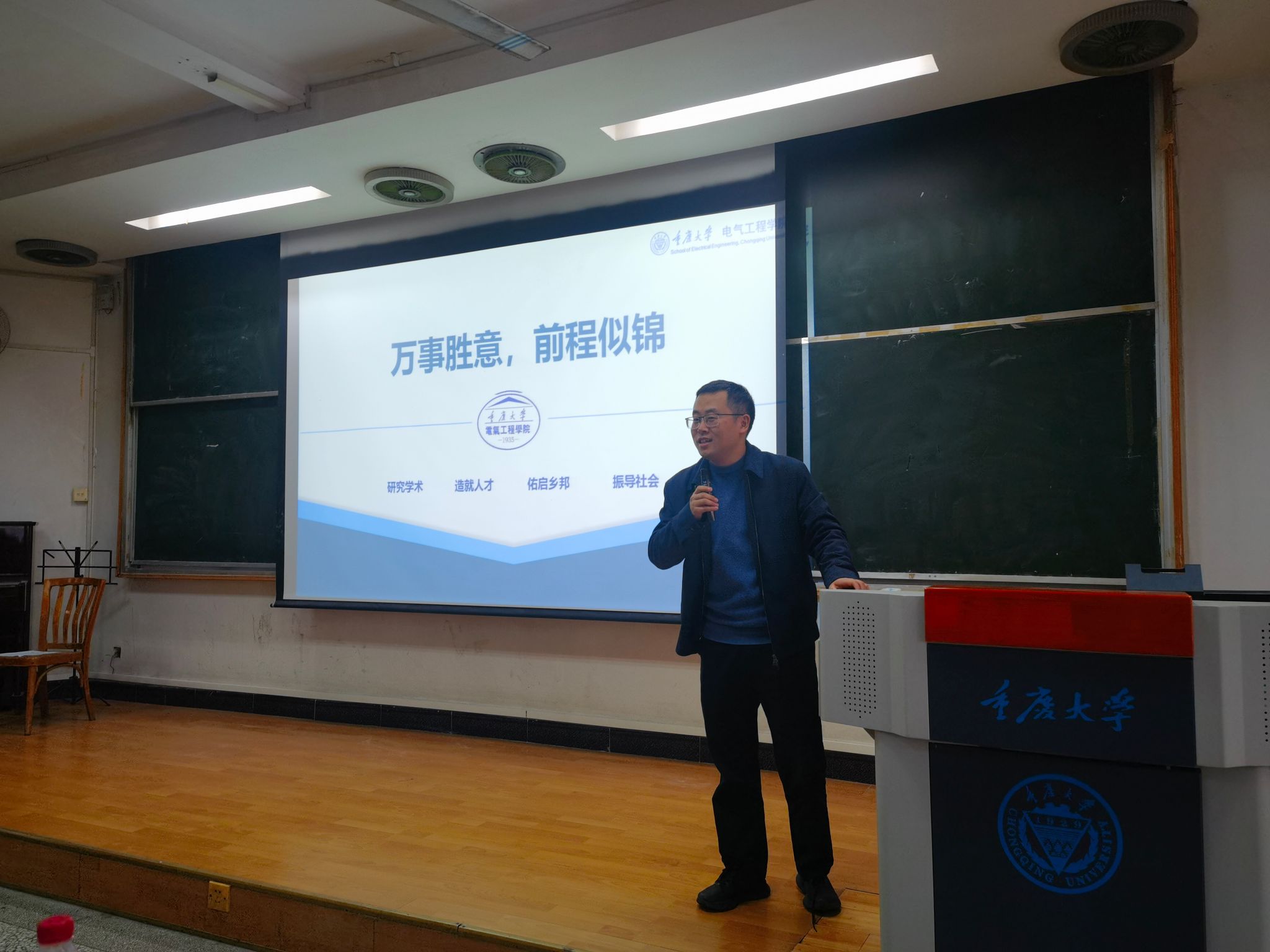 在理科楼225教室召开2024年研究生毕业动员工作会,院长谢开贵教授、副院长杨鸣教授、研究生教务和学生工作办公室以及全体2024年毕业研究生参加了大会,会议由杨鸣主持。