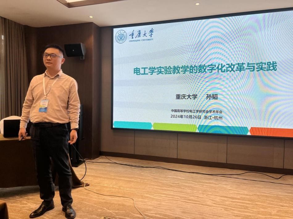 在实践教学分会场,我校电工理论与新技术实验室主任孙韬为大家分享了“电工学实验教学的数字化改革与实践”,报告从磁力猫