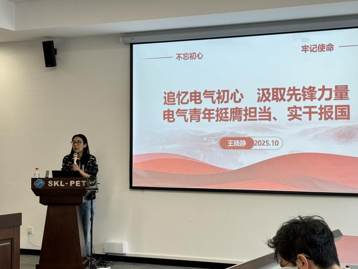 10月30日下午,学院党委副书记、纪委书记王晓静同志为学员们讲授“追忆电气初心,汲取先锋力量——电气青年挺膺担当、实干报国”主题党课。旨在引导电气青年重温学科发展历程,传承奋斗精神,增强投身新时代建设的责任担当。党课回顾了学院电气专业从无到有、由弱至强的发展历程,生动展现了一代代电气科技工作者爱国奉献、勇攀高峰的初心与担当。学员纷纷表示,通过系列培训,进一步坚定了理想信念,夯实了理论根基。今后将努力锤炼专业本领,勇于创新创造,把个人发展融入国家与民族的事业中,以“挺膺担当”之志和“实干报国”之行,为维护国家能源安全、推动绿色低碳转型、实现高水平科技自立自强贡献青春智慧与力量。