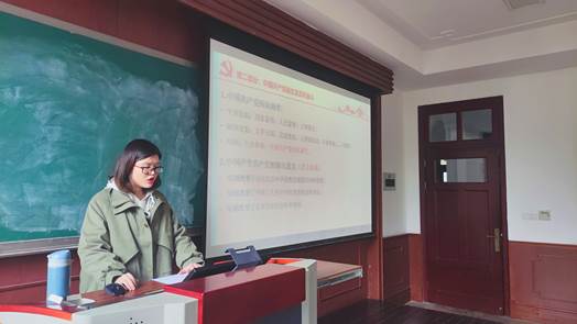活动开始,由林宋佳带领在座党员学习领会习近平总书记七一讲话重要精神,内容分为“庄严宣告全面建成小康社会”、“与中国共产党诞生及百年奋斗有关的论述”、“伟大建党精神”和“以史为鉴、开创未来”四个部分。通过了解共产党诞生的历史背景以及诞生的伟大意义,同志们对实现中华民族伟大复兴的主题有了更深刻的理解。随后,回顾了一百年来中国共产党创造的四个伟大成就:创造了新民主主义革命、社会主义革命和建设、改革开放和社会主义现代化建设以及新时代中国特色社会主义四个伟大成就。