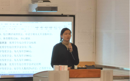 培训会结束之后,喻老师对学院《优秀学生综合奖学金实施办法》以及本科阶段可以参与的学科竞赛进行了一一介绍。希望同学们能积极参加科技竞赛、校园活动、志愿服务、社会实践等丰富自己的大学生活。学期已经过半,希望同学们要合理安排好自己的时间,努力学习,争取期末考出好的成绩。